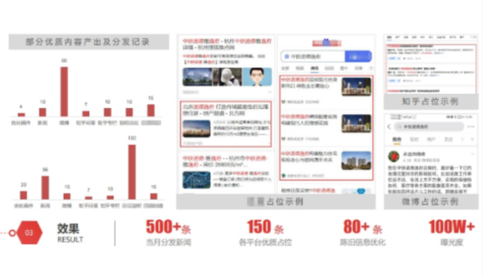 树立品牌优质信息,多形式专业内容铺设,进行互联网内容占位及打造品牌良好口碑环境,多平台扩大品牌声量。